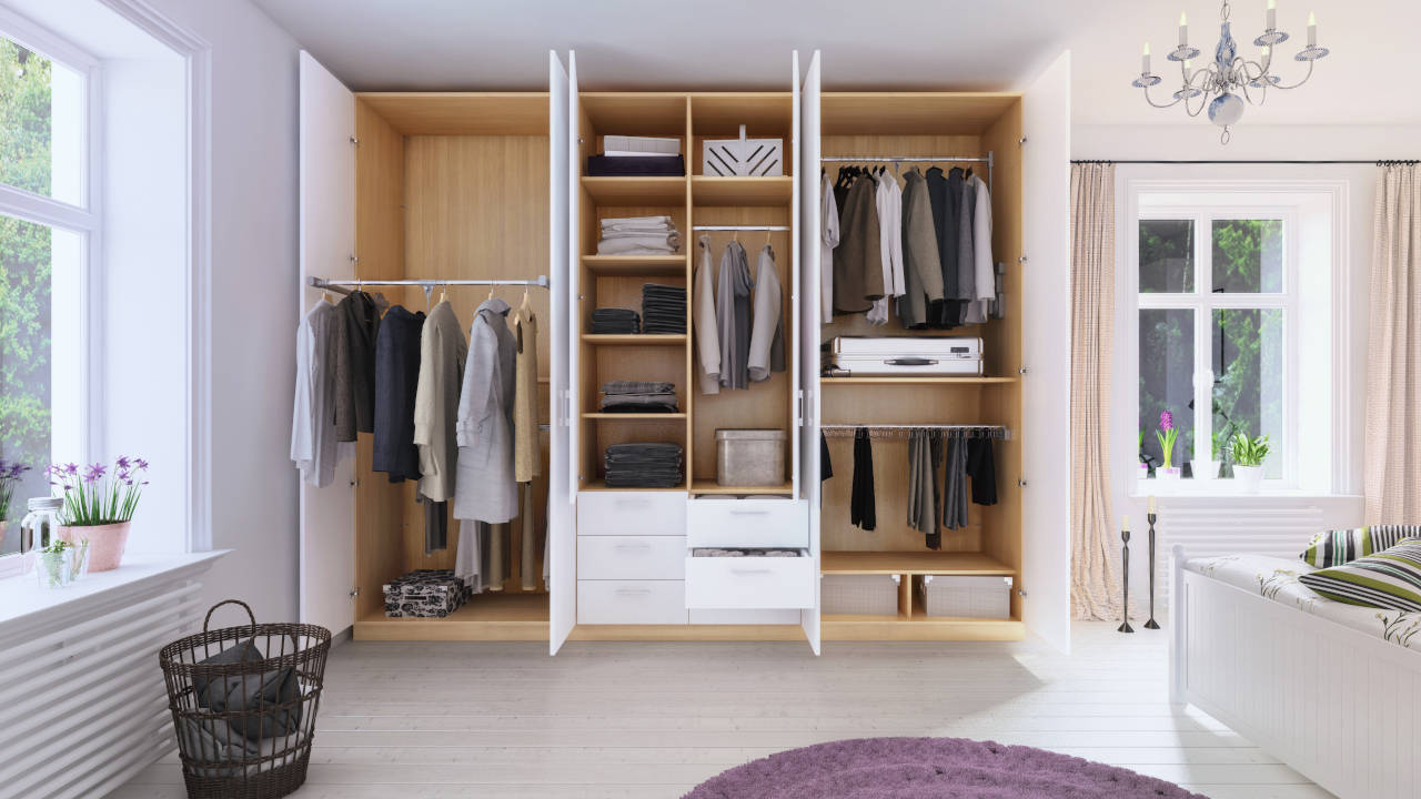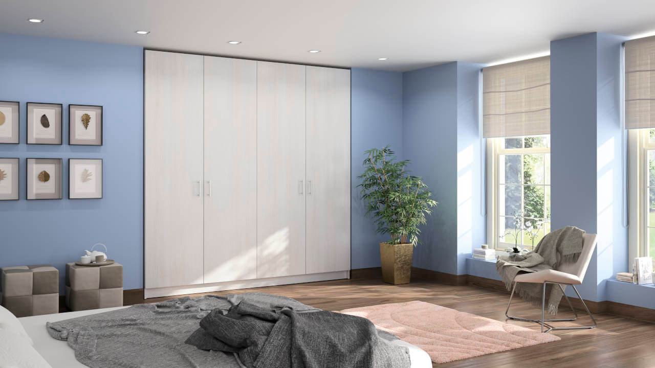 Det enkle garderobeskab er et sandt opbevaringstalent. Udtrækkelige garderobelifte, hylder, skuffer og bøjlestænger giver masser af plads til alt dit tøj. I de klassiske dekorer bøg og hvid øger skabet hyggefaktoren i soveværelset og skaber en behagelig atmosfære.