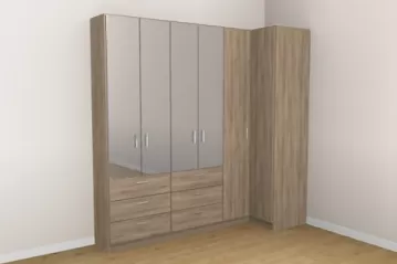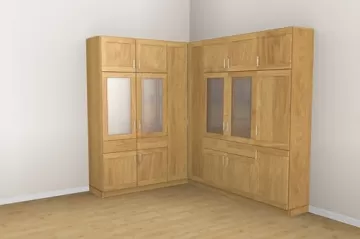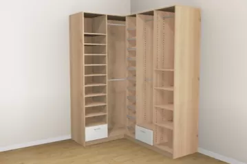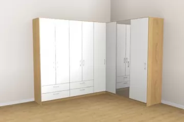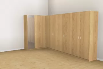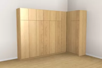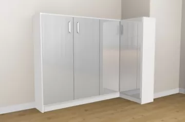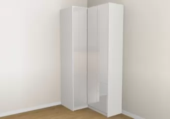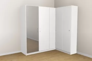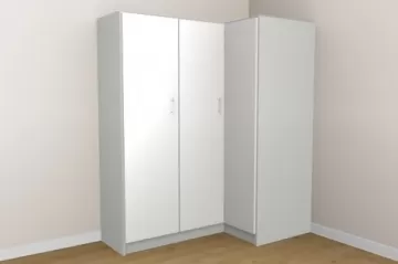 „Har du god plads, er hjørneskabe det rette valg for at opnå maksimal opbevaringsplads. Takket være de mange konfigurationsmuligheder egner de sig både som klædeskab i soveværelset, som walk-in-closet eller som hjørneløsning i badeværelse eller entré. Også hjørneskabe med skrå side til højre eller venstre kan uden problemer konfigureres.“
