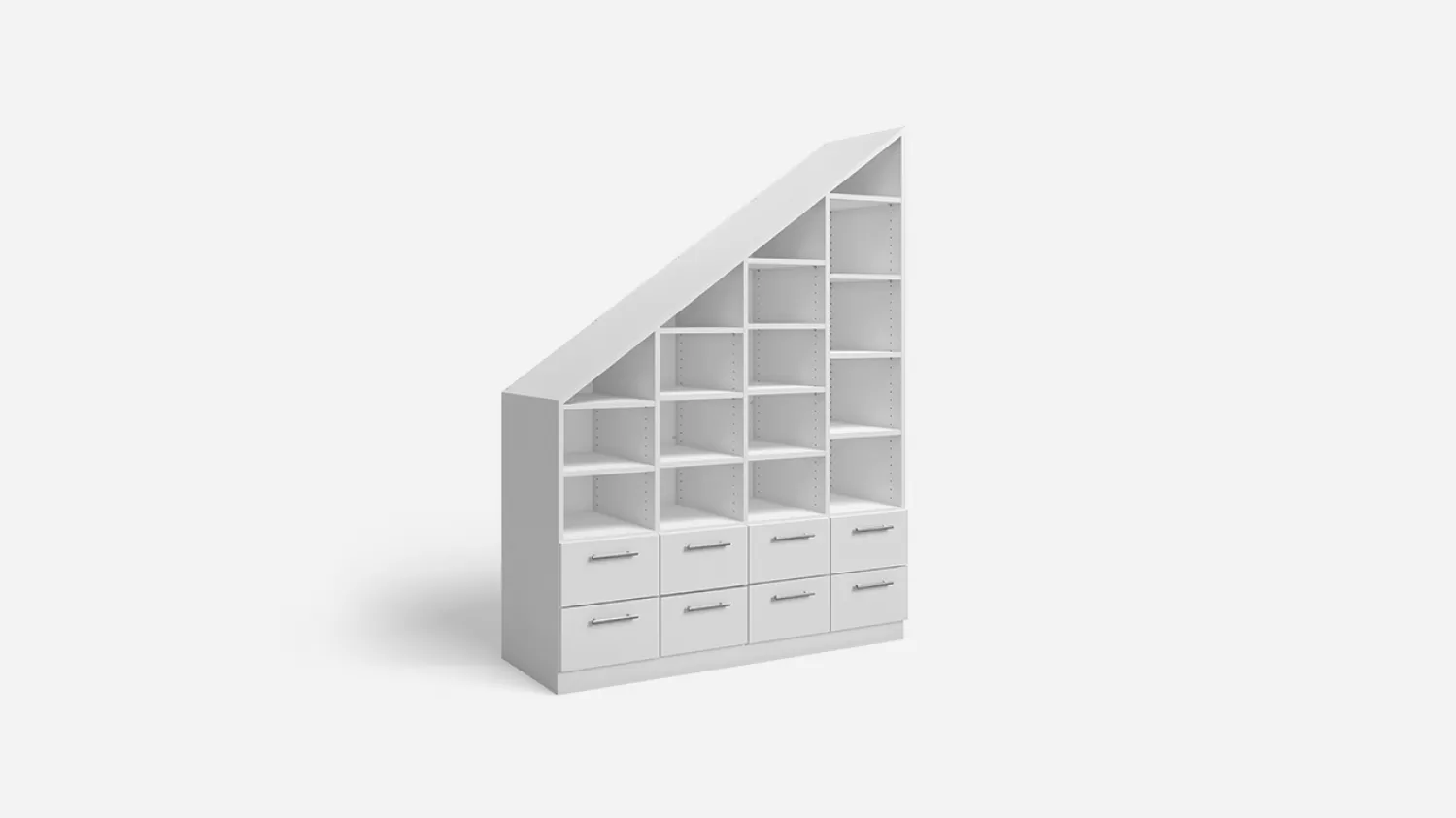 Hos Furnfab.com kan du på kort tid designe møbler efter mål til skråvægge – helt uden kompromiser. På få trin indtaster du bredde, højde og dybde samt dine ønsker til indretning og design. Vi står for gennemsigtighed! Derfor viser konfiguratoren dig hele tiden din personlige pris under planlægningen. Du kan nemlig selv påvirke den med hvert klik.