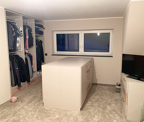 Walk-in-closets og garderober bliver stadig mere populære. Et separat rum, der ligger op til soveværelset, egner sig særligt godt til dette. Med skræddersyede skabe kan du skabe en garderobe med maksimal opbevaringsplads og en behagelig atmosfære. Lad dig inspirere af vores kundebilleder.