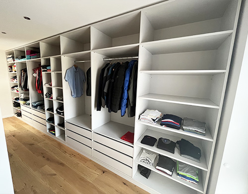 Opdag, hvordan vores kunder skaber en garderobe med skræddersyede skabe.