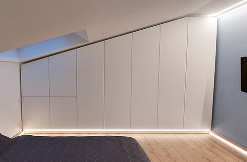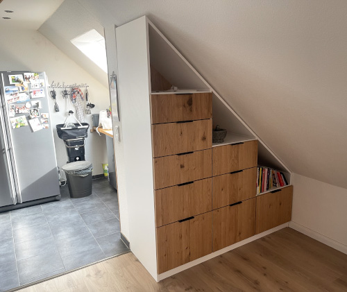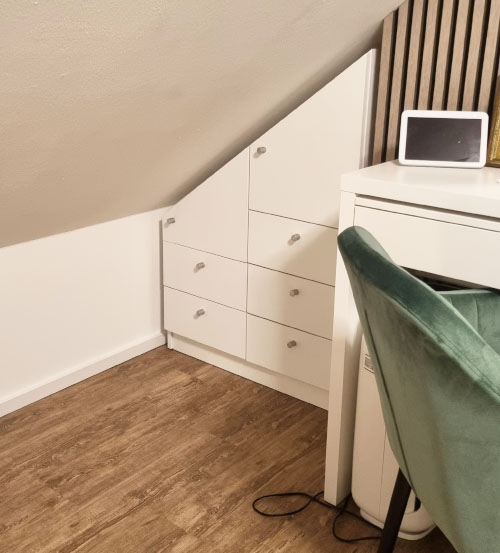 Vores kunder viser, hvordan skræddersyede skabe til skråvægge skaber ekstra opbevaringsplads.