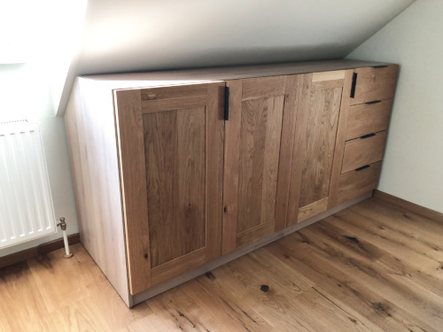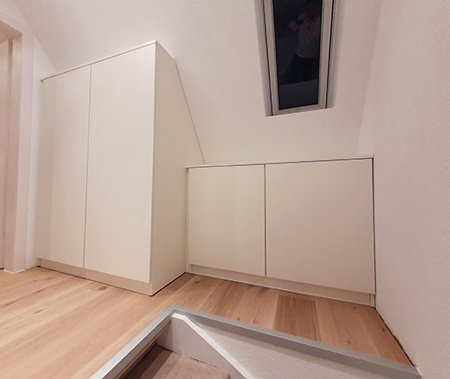 Kundebilleder med specialfremstillede skabe til skrå vægge