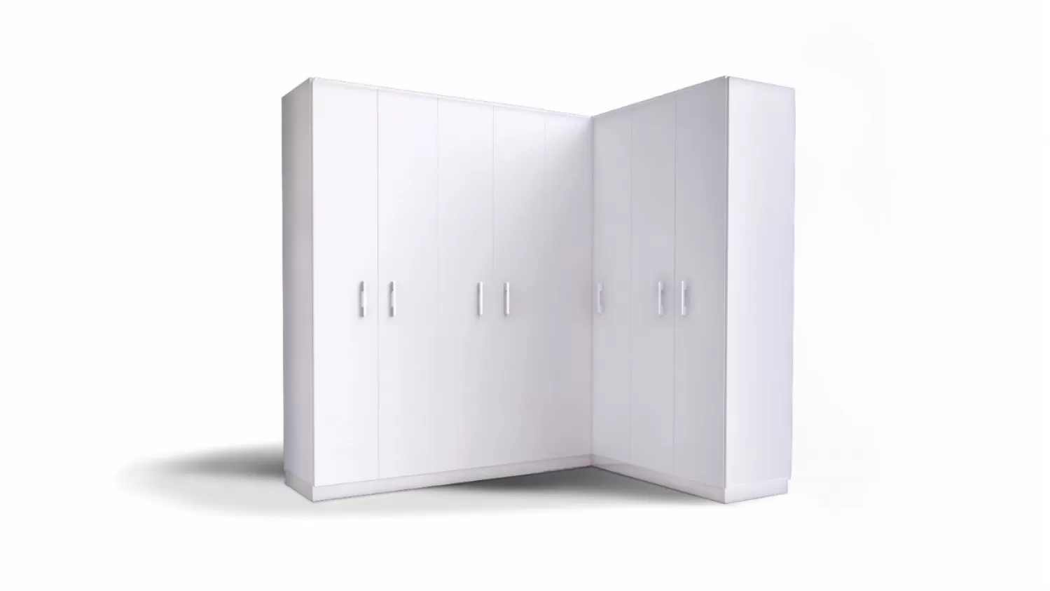„En cas de grand espace disponible, les armoires d'angle sont le choix idéal pour maximiser le rangement. Grâce aux nombreuses possibilités de configuration, elles conviennent aussi bien comme armoires de chambre, dressings ou solutions d'angle dans la salle de bain ou le couloir. Les armoires d'angle avec une pente à droite ou à gauche peuvent également être configurées sans problème.“